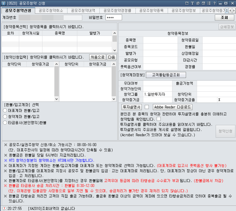 공모주 청약신청 방법은 내 스마트폰 MTS나 PC에서 HTS를 여시고 메뉴검색에서 '공모주 청약' 이라고 검색하면 위와 같은 화면이 나옵니다. 위 화면은 예를 들기위해 보여드리는 화면 입니다.