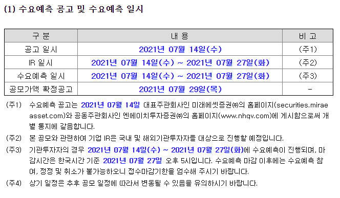 8/2~8/3간 청약신청을 하였다면 5일에 대금을 납입하게 되고 10일에 상장이 되게 됩니다. 청약일에 내가 몇주에 당첨됐는지 문자가 오거나 내가 직접들어가서 봤다면 청약당첨수량 * 공모가액을 현금으로 계좌에 넣어두시면 됩니다.