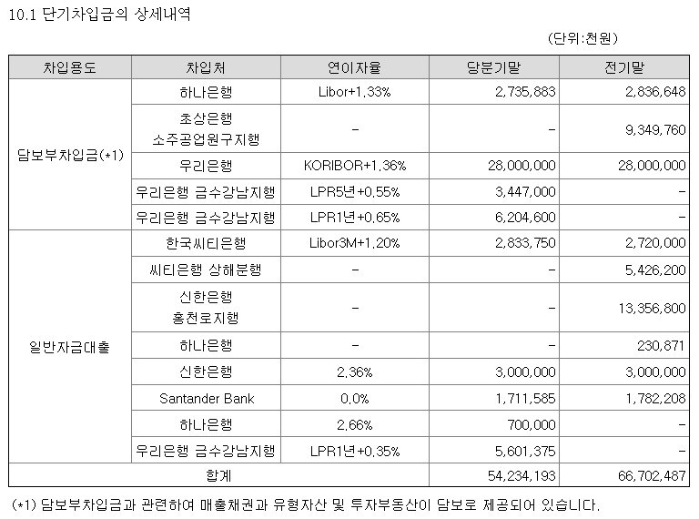 자본총계 대비 부채의 비율도 매우 훌륭하며 재무적인 부분으로 문제될 소지는 없어 보입니다. 한샘의 차입금 내역을 보실까요?