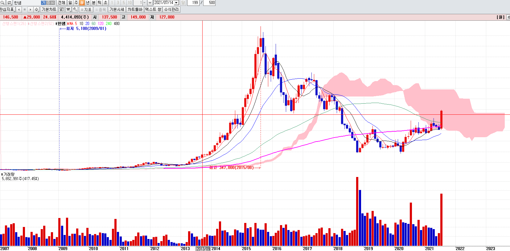 한샘(009240)이 매각기대감에 따라 이틀간 30%이상 급등이 나와 주었습니다. 무려 51년만에 새 주인을 찾겠다는 한샘.