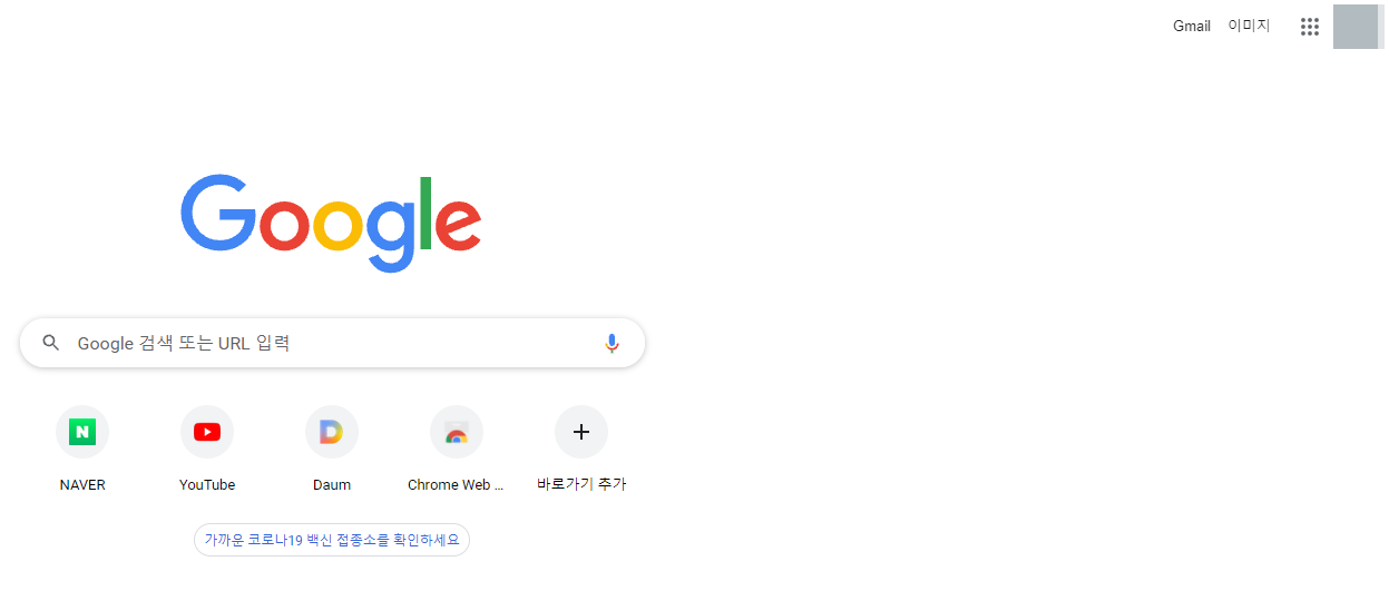 먼저 크롬브라우저나 기타 브라우저를 통해 구글에 접속해 줍니다. 그럼 다음과 같이 메인화면이 뜰텐데요. 우측 상단에 Gmail과 이미지가 있는데 이미지를 눌러 줍니다.