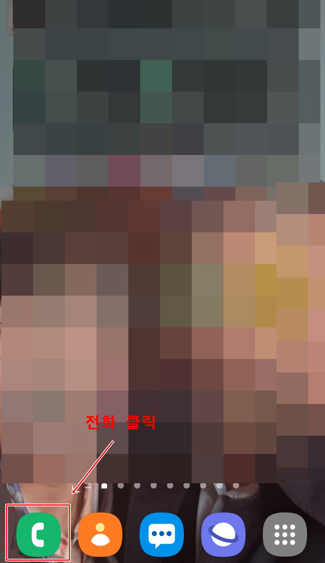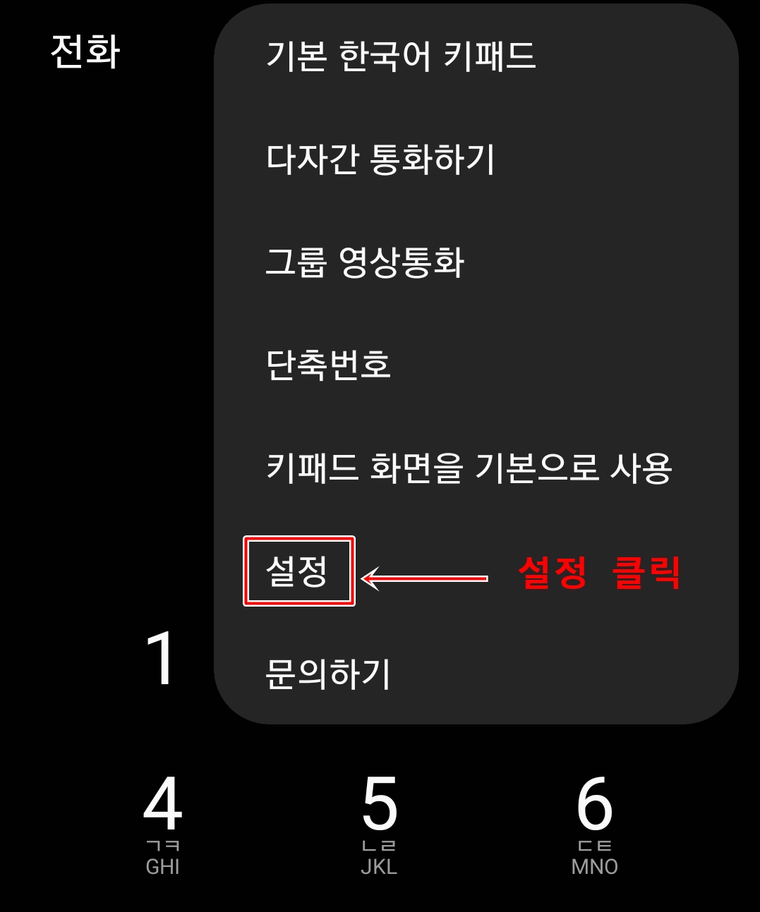 먼저 삼성갤럭시 메인 화면에 전화 모양을 눌러 주세요. 그럼 우측과 같은 화면이 나올텐데요. 우측상단에 점 3개짜리 버튼을 눌러 주세요. 그럼 아래와 같은 화면이 나올겁니다.