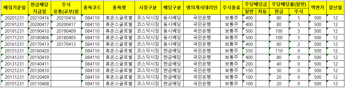 휴온스글로벌 역대 배당일