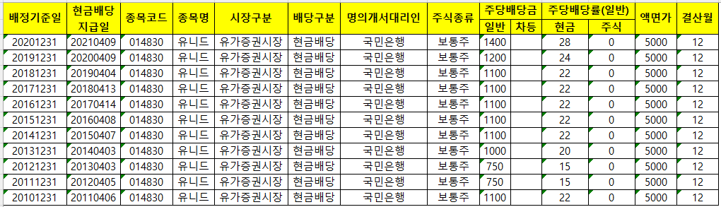역대 유니드 배당일