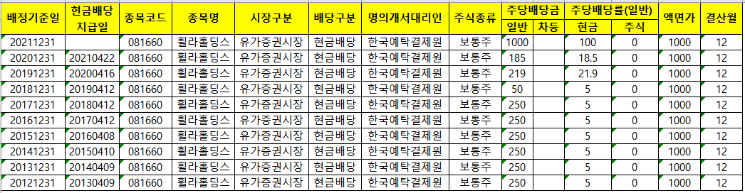 때문에 올해 휠라홀딩스 배당일은 4월 22일이 될것으로 예상합니다.