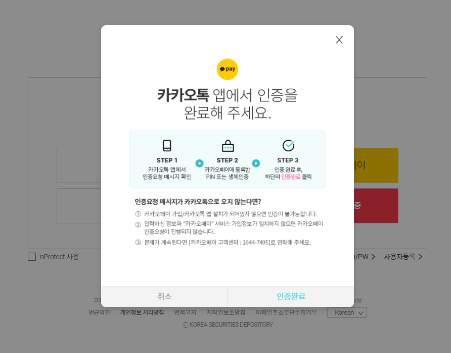 저같은 경우는 가장 간편하다고 생각되는 카카오페이 인증방법을 선택해 보겠습니다.