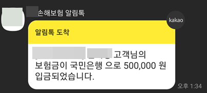 고객님께서는 자부상 가입한도를 최대로 가입해놓으셨기 때문에 청구 즉시 50만원이 입금 되었습니다.