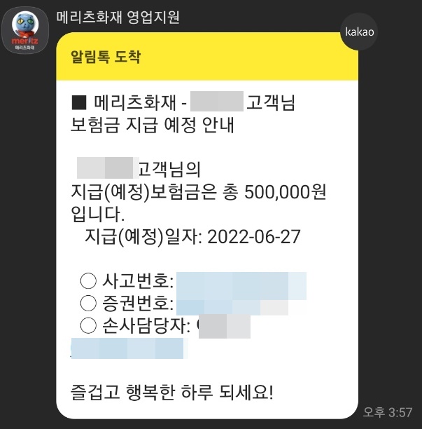 때문에 즉시 해당 손사담당자에게 전화를 걸어야 했습니다.