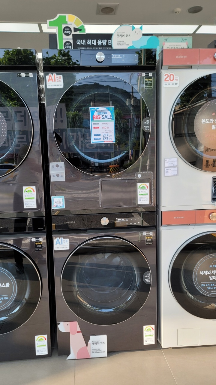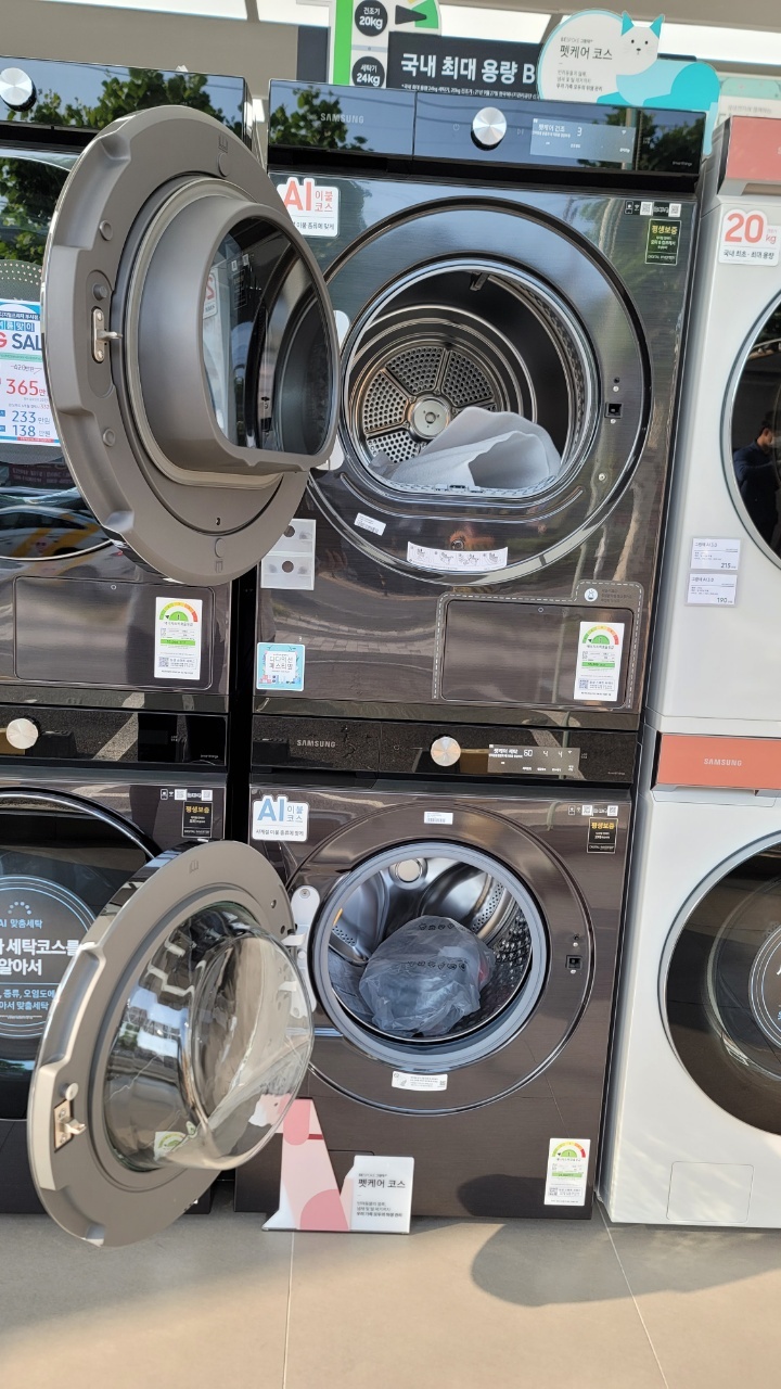 요즘은 세탁기와 건조기를 셋트로 많이 구매하죠? 세탁기 건조기 셋트중 가장 색깔도 그렇고 깔끔하여 보게 됐는데 역시나 제일 비싼 최신 제품이더라구요.