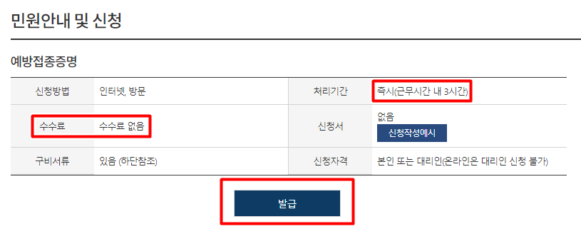 수수료는 당연 무료이고, 신청시 즉시 발급이 가능 합니다. 아래 발급을 눌러 주세요.
