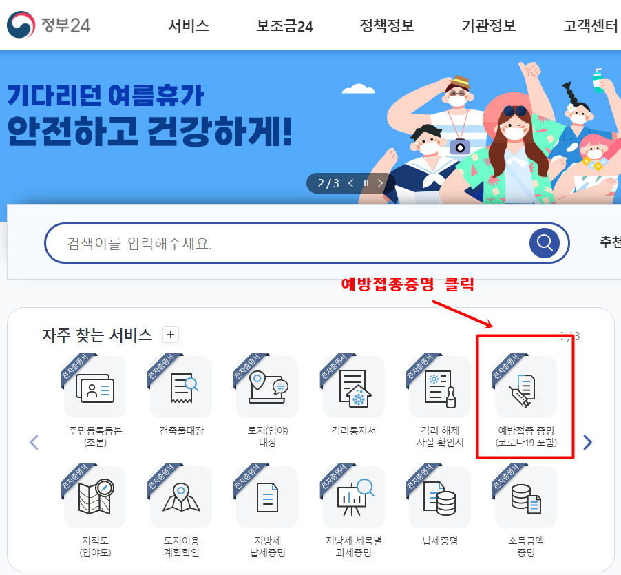 정부24 사이트에서 백신접종증명서 무료 발급 하는 방법
