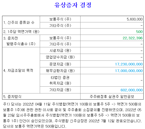 카이노스메드의 현재 발행주식 총수는 2232만주 인데, 여기에 560만주를 발행하면서 총 350억원의 자금을 조달하게 됩니다. 자금 조달의 목적은 운영자금에 172억원, 채무상환자금에 170원을 사용하겠다고 밝히고 있습니다.