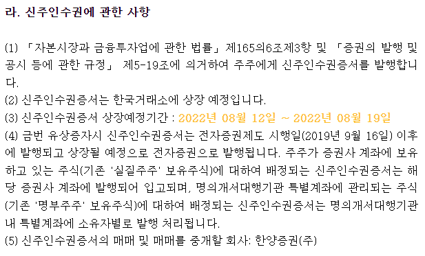 카이노스메드42r 유상증자 권리락 및 청약신청 방법 글 도움이 되셨나요? 도움이 되셨다면 아래 로그인이 필요 없는 ♡버튼 부탁 드리며, 본문내에 알짜 핵심자료들이 많으니 링크타고 들어가셔서 좋은 정보 많이 얻어가시길 바랍니다. "무릎에 사서 어깨에 판다" 언제나 무사어판 매매하시길 바랍니다. 감사합니다.