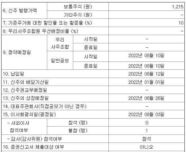 바이오로그디바이스의 경우도 8월 3일 종가가 1350원이었는데요. 90% 할인된 가격인 주당 1215원에 신주를 발행하게 됩니다.