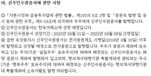 | 가온전선13R 주주배정 유상증자 청약일정 방법 총정리 (1) | 2022.08.16 |