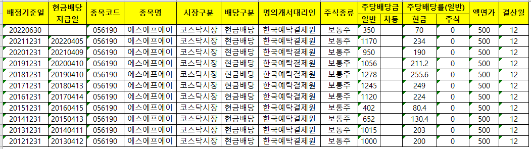 에스에프에이 역대 배당일을 살펴보고 올해 배당금 지급일이 언제일지 알아 보겠습니다.