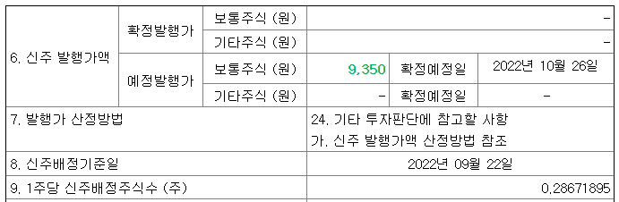 시초가가 하락하여 출발하는 이유는 신주발행가가 현재의 주가보다 낮기 때문에 그만큼 떨어져서 출발하게 되는것입니다. 예정발행가가 보이시죠? 예정발행가 수준에서 신주발행가가 결정되기 때문 입니다. 그러나 권리락 당일 곧바로 시초가가 회복하는 경우가 있으니 이때에 주식을 전부 매도 후 추후 신주인수권만 받아 팔아도 수익을 챙길 수 있으며, 또는 신주인수권을 가지고 유상증자에 참여하여 할인된 가격의 주식을 받을 수 있습니다. 이 주식 꿀팁은 아래에서 계속해서 설명 드리겠습니다.