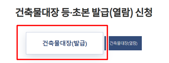 그다음 최상단의 건축물대장(발급)을 선택해 주시고요. 다음으로 넘어가시면 아래 건축물 소재지와 대장구분, 대장종류를 넣는란이 있습니다. 그리고 최하단의 민원신청을 눌러주시면 끝입니다.