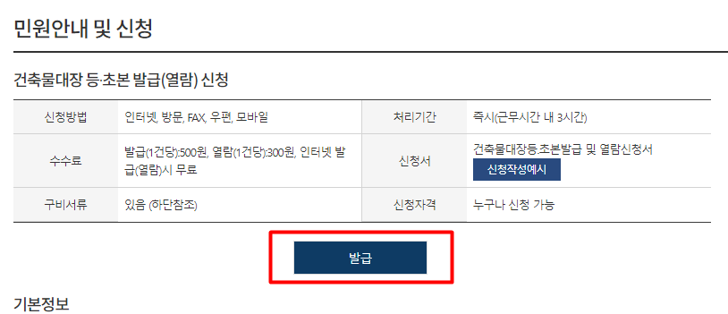 건축물대장 인터넷 무료발급 바로가기