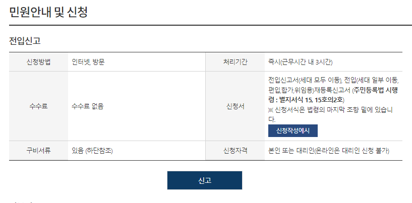 전입신고 | 민원안내 및 신청 | 민원24 | 정부24