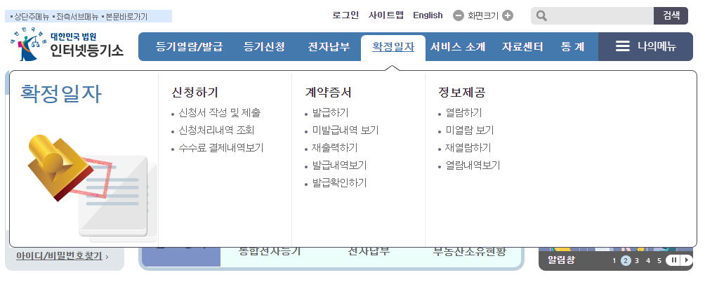 확정일자는 민원24 사이트가 아닙니다. 대법원 등기소 사이트에서 처리가 가능한데요. 먼저 대법원 등기소 사이트에 접속해 주세요.