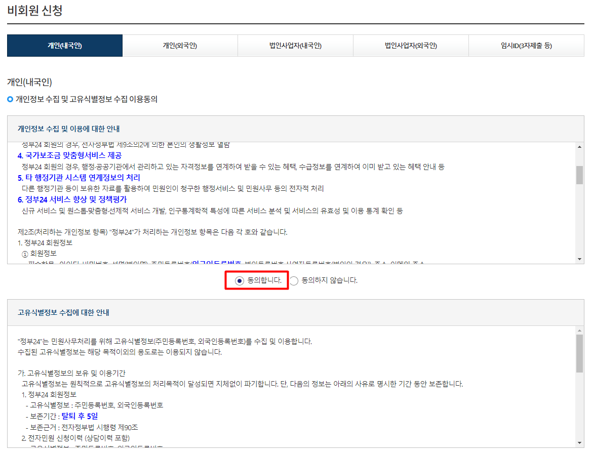 들어가시면 우선 동의합니다에 체크를 하고 다음을 눌러 주세요.