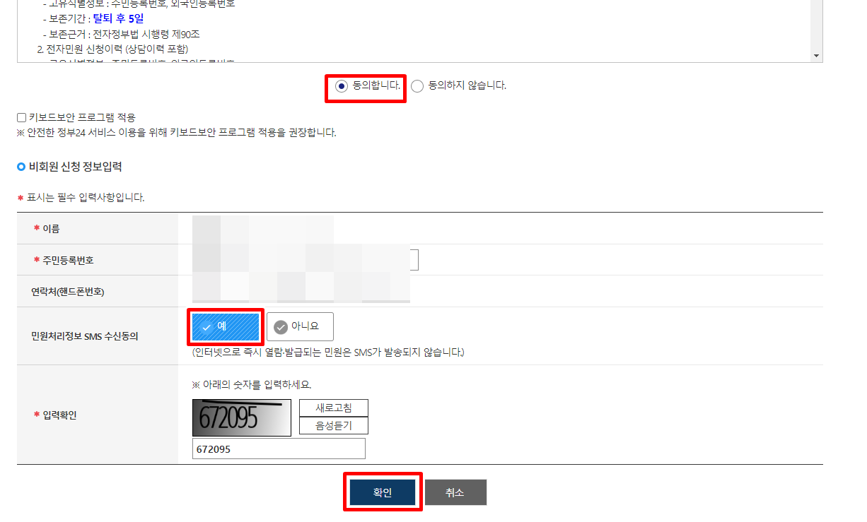 그다음 모두 동의하기를 체크해 주시고, 개인 정보를 입력해 주세요.