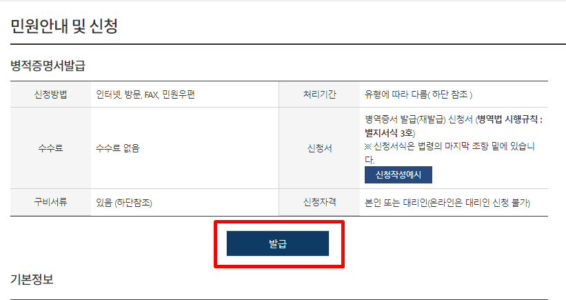 병적증명서(병역확인서) 인터넷 무료발급 바로가기