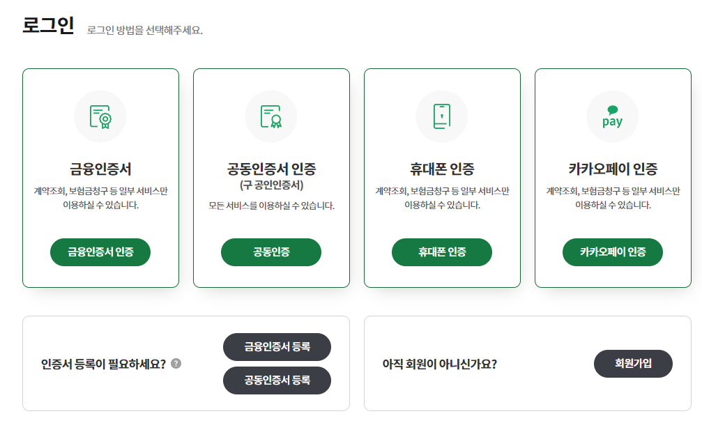 그다음 본인인증 바로가기를 클릭하시고 본인인증을 완료해 주세요. 본인인증은 공동인증서로도 가능하지만, 요즘은 간편인증으로 더욱더 간편하게 인증이 가능 합니다. 네이버인증 또는 카카오인증이 있습니다.