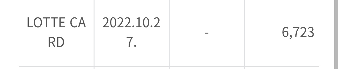 위 화면은 롯데 스카이패스 카드로 10월 부가세 납부 후 적립된 6,723 마일 입니다. 물론 적립은 카드소유주의 마일리지로 납부가 됩니다. 따라서 가족명의의 신용카드가 있을 경우 납부하시고 마일리지를 땡겨오시면 됩니다. 가족등록을 해두시면 마일리지를 상호교환 할수 있기 때문입니다.