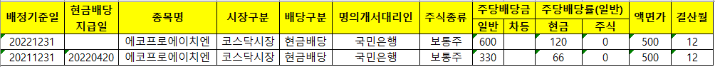에코프로에이치엔 역대 배당일을 살펴보고 올해 배당금 지급일이 언제일지 알아 보겠습니다.