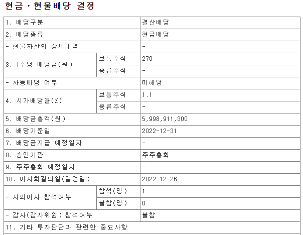 유진테크는 올해 공시를 통하여 1주당 270원의 배당금을 지급하겠다고 하였습니다. 사실 기업의 규모나 영업이익 측면에서 그렇게 많은 배당금을 주는 회사는 아닌데요. 그래도 안하는것 보다야 낫겠죠?