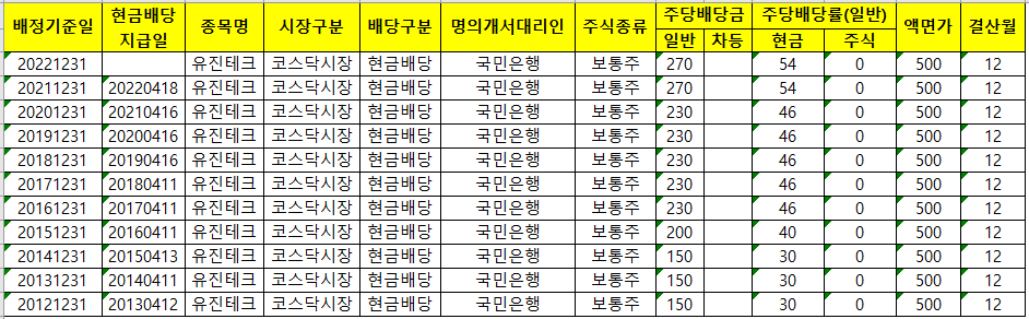 유진테크 역대 배당일을 살펴보고 올해 배당금 지급일이 언제일지 알아 보겠습니다.