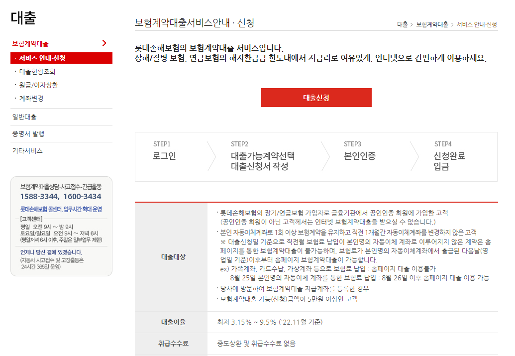 롯데손해보험 보험 약관(계약) 대출 신청하는곳 바로가기