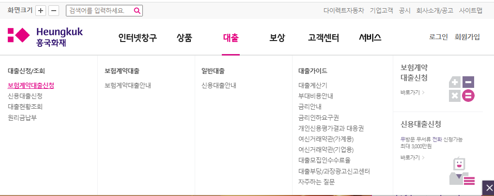 흥국화재 보험약관(계약) 대출 신청하는곳 바로가기