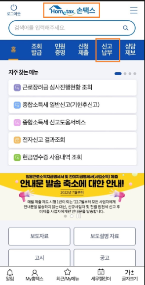 스마트폰으로 부가세(국세) 카드 납부 방법(손택스)