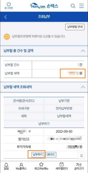 부가세(국세) 스마트폰으로 카드납부 현금납부 하는 법(손택스)