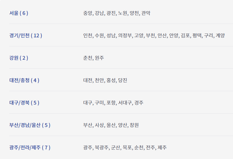 만약 스마트폰 앱 사용이 어려우신 분들은 전국 41개 서민금융통합지원센터에 방문하셔서 보증신청을 하셔야 합니다. 각 지역별 서민금융지원 통합센터는 다음과 같습니다.