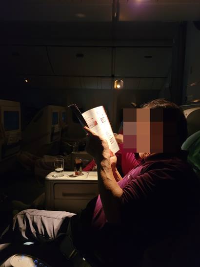 이제 출발을 하는데요. 창 2개정도를 나혼자 쓸수 있습니다. 그리고 의자가 180도로 젖혀 지기 때문에 편하게 주무시면서 비행할 수 있습니다. A330이 구식이라고 하던데 촌놈인 저는 딱히 불편함은 없었고 너무 좋았네요.