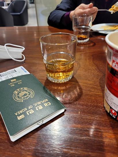 비지니스에서 라면은 안되는걸로 알고 있는데요. 대신 술은 갖다달라는 대로 계속 줍니다. 저같은 경우는 잭콕을 좋아하기 때문에 잭콕만 주구장창 마셨네요.