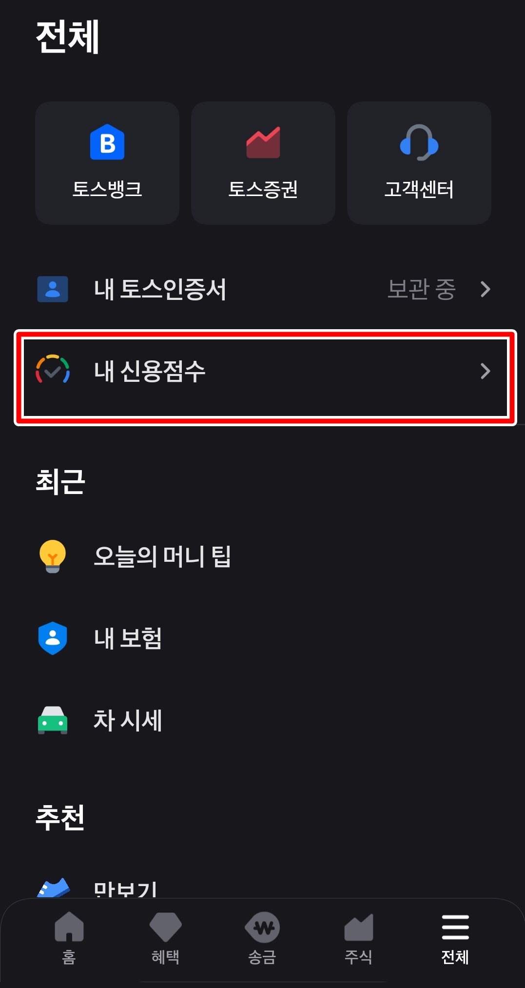 2. 무료 신용점수/신용정보 조회 토스뱅크에서 하는 방법