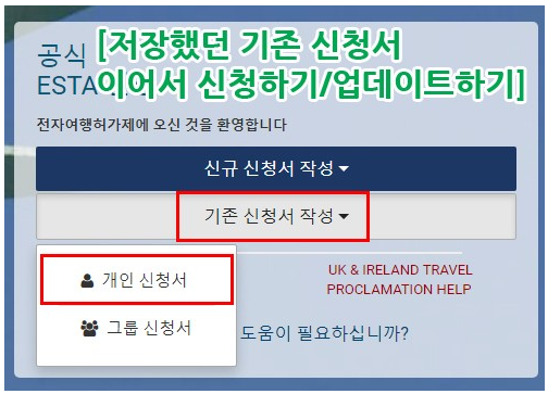 3. ESTA비자 신청 이어서 신청 및 수정하는 법