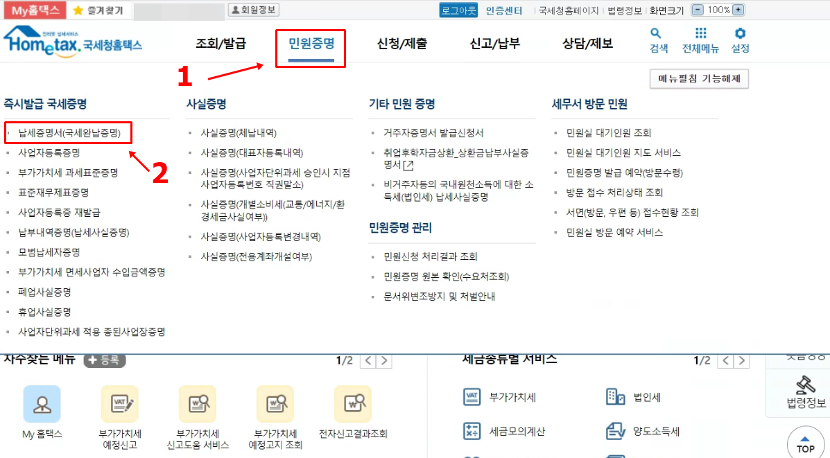 홈택스에서 법인 국세완납증명서 발급받는 방법