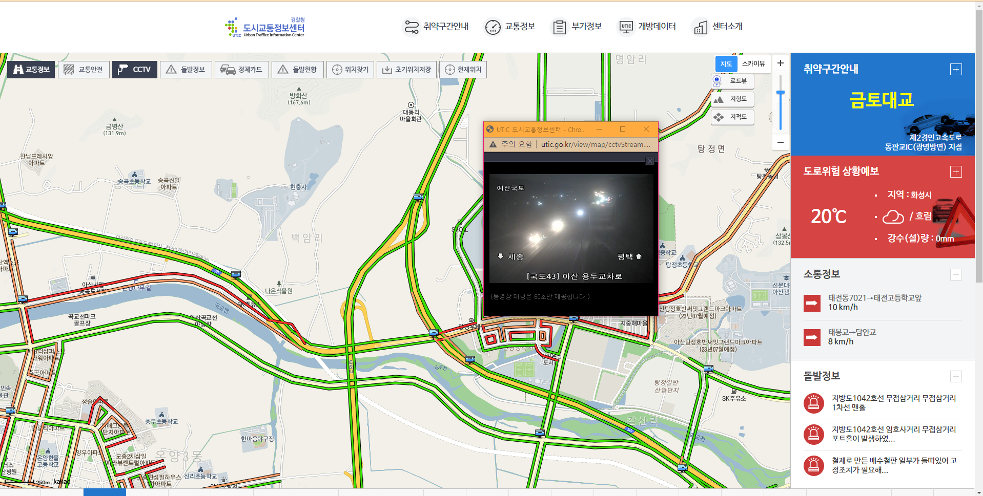 먼저 국도 막히는곳 상황을 알려주는 사이트로 이동하셔야 합니다. 바로 도시교통정보센터라는 사이트인데요. 국가에서 운영하는 사이트 입니다. 막히는곳, 정체구간, 실시간 교통상황을 국도위주로 보여드리며 더불어 CCTV까지 확인이 가능하니 내가 가고자 하는곳에 교통상황을 미리 파악 해 보세요. 주소를 첨부 합니다.