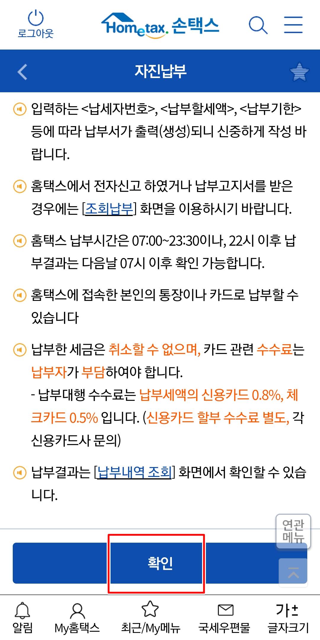 [자유게시판/정보] - 부가세 홈택스에서 카드 납부 하는 방법