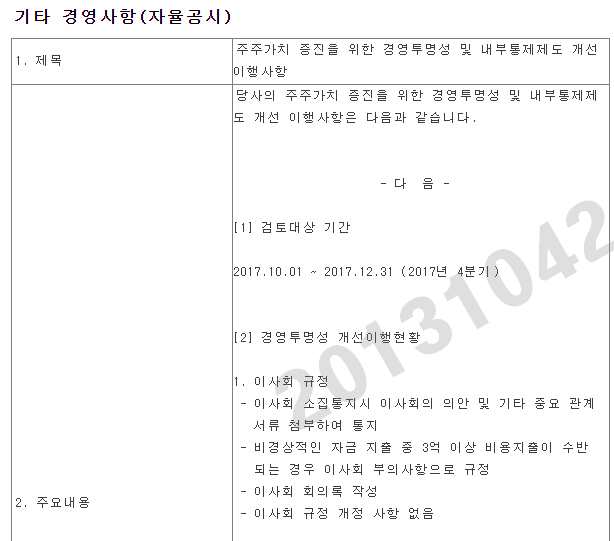 살려 달라고 애원할때는 뭐든 할거 같았지만, 시간이 지나고 보니 이마저도 귀찮았던걸까요? 어쨋든 당시 거래소가 살려주는 댓가로 내부회계통제 시스템을 구축하고, 경영투명성 이행현황을 지속적으로 보고 하라고 했습니다. 그것은 대주주도 아니고 등기임원도 아닌 실질적 경영지배인인 김영준이 회삿돈을 맘대로 쓰는것을 방지하기 위함이었는데요.