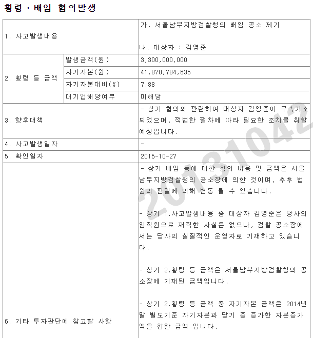 살려 달라고 애원할때는 뭐든 할거 같았지만, 시간이 지나고 보니 이마저도 귀찮았던걸까요? 어쨋든 당시 거래소가 살려주는 댓가로 내부회계통제 시스템을 구축하고, 경영투명성 이행현황을 지속적으로 보고 하라고 했습니다. 그것은 대주주도 아니고 등기임원도 아닌 실질적 경영지배인인 김영준이 회삿돈을 맘대로 쓰는것을 방지하기 위함이었는데요.