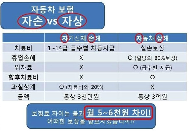 자상(자동차손해)와 자손(자기신체사고) 뭘로 가입해야 할까?