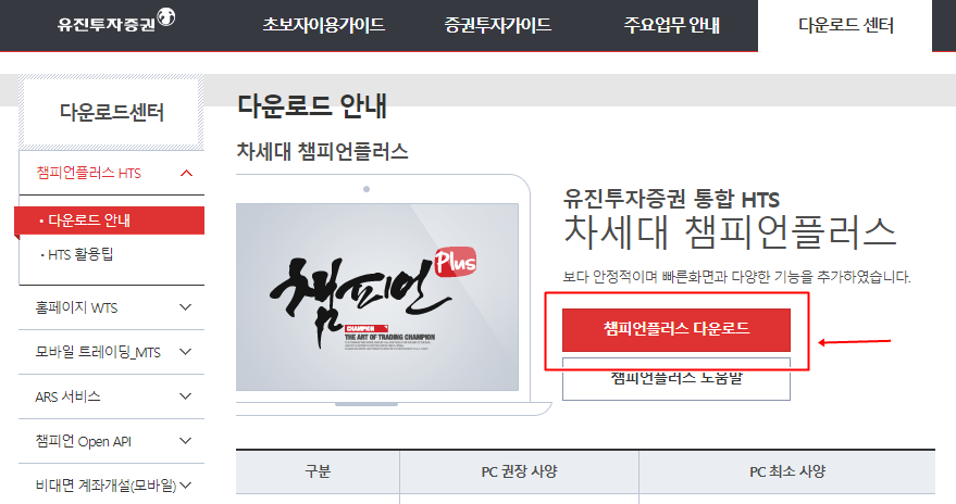 유진투자증권 HTS 챔피언 플러스 다운로드 바로가기
