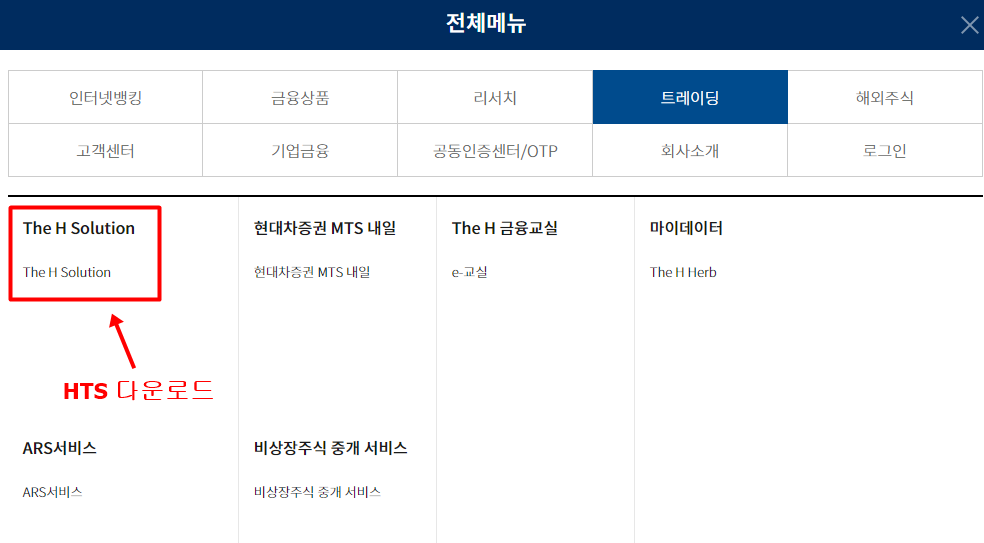1. 현대차증권 HTS H solution 다운로드 바로가기